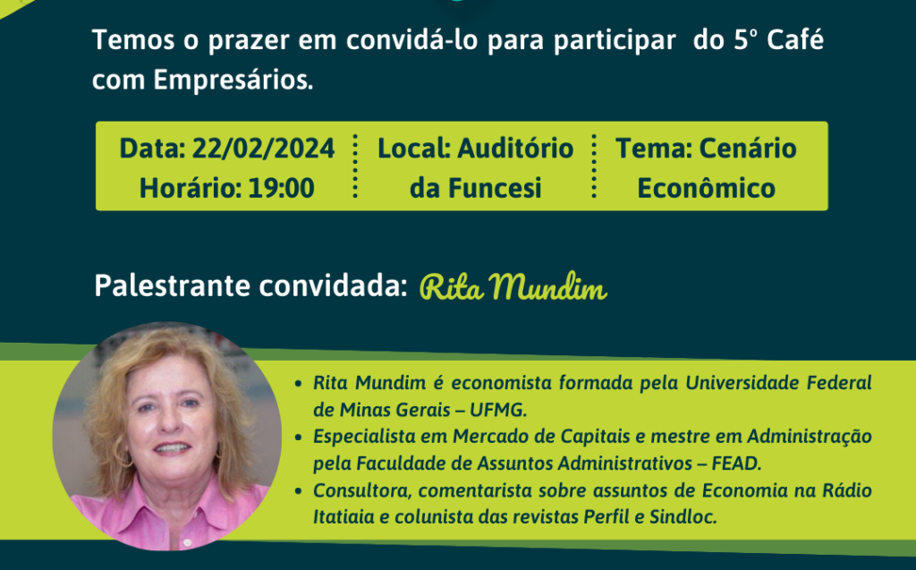 Sicoob Credivale promove o 5º Café com Empresários para discutir o Cenário Econômico O Sicoob Credivale tem o prazer de te convidar para o 5º Café com Empresários, marcado para o dia 22/02/2024, às 19h, no auditório da UNIFUNCESI. Este evento contará com a palestra da renomada Rita Mundim, abordando o tema do atual cenário […]
