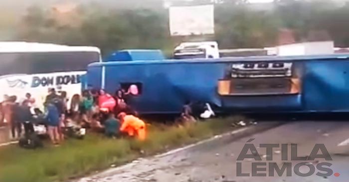 Ônibus tomba e deixa 18 feridos; vídeo