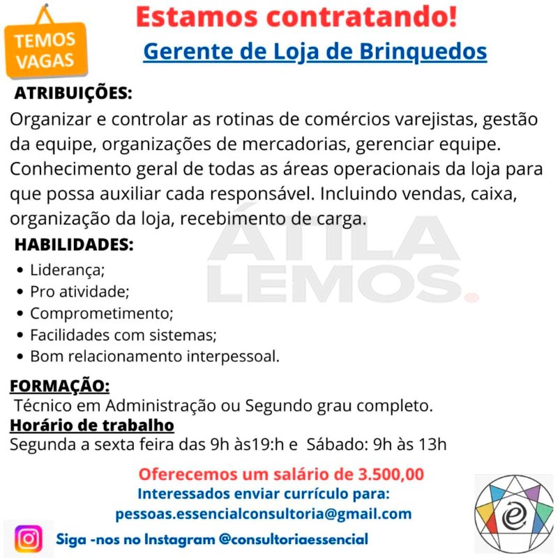 VAGA de Gerente salário de R$ 3.500,00 na Essencial Consultoria 19/02