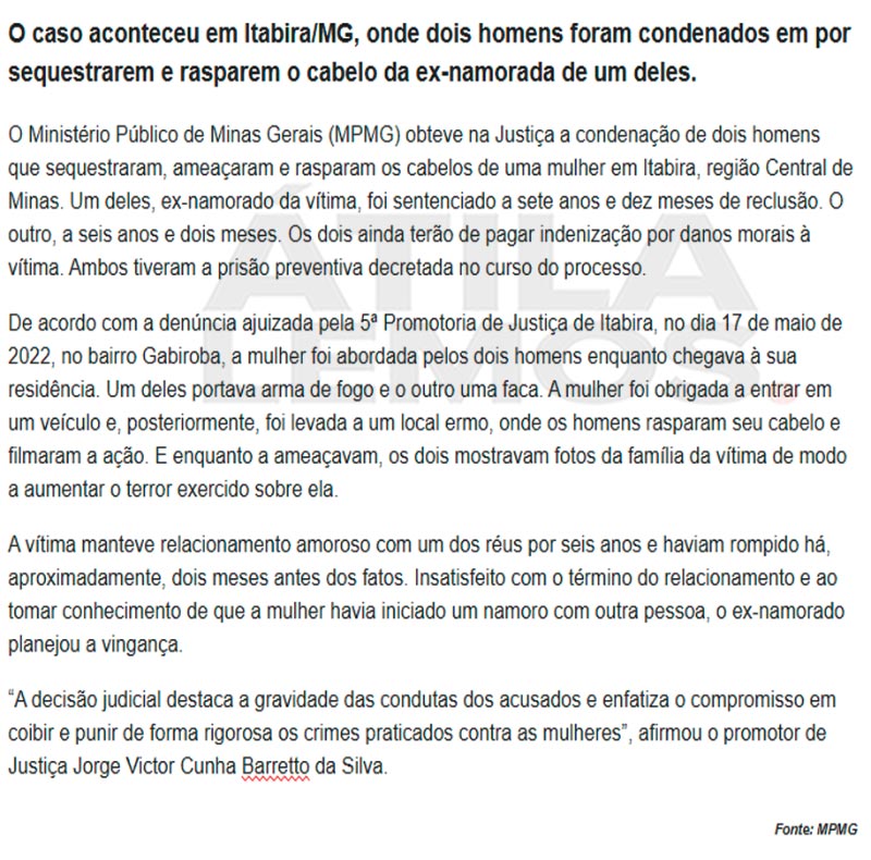 Itabira: dupla é condenada por sequestrar e cortar cabelo de vítima