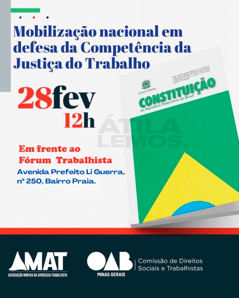 Mobilização Nacional em Defesa da Competência da Justiça do Trabalho: OAB Itabira e AMAT convocam participação.