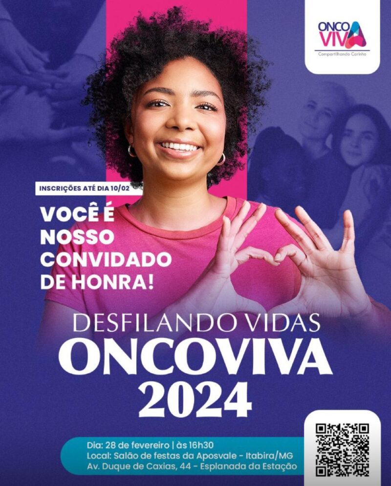 A Oncoviva realiza nesta quarta-feira 28 de fevereiro, na Aposvale de Itabira, às 16:30h, o tradicional evento Desfilando Vidas para pacientes oncológicos, familiares e amigos de Itabira e cidades vizinhas!