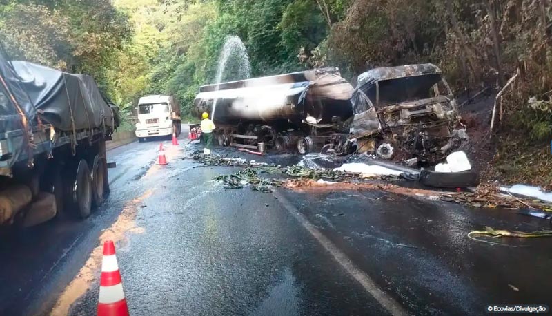 Acidente com caminhão de combustível provocou interdição da pista. Motoristas da capital paulista que estão tentando descer à Baixada Santista enfrentam horas de engarrafamento após um acidente ocorrido neste domingo (10). Um caminhão que transportava combustível pegou fogo e houve o derramamento de parte do combustível na via. Não há registro de vítimas no acidente. […]