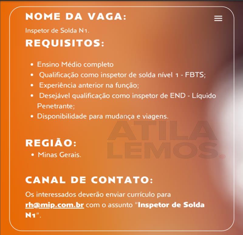🔶 INSPETOR DE SOLDA N1