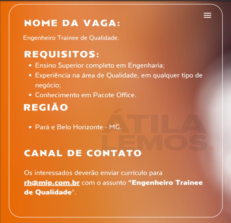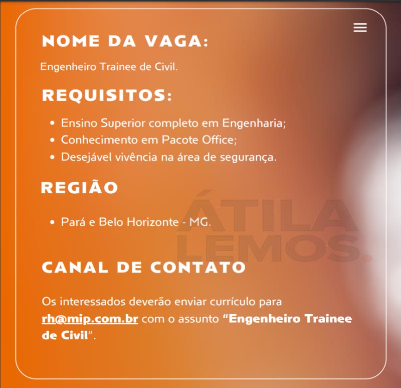 MIP Engenharia está contratando 11/03