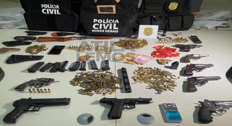 Em Governador Valadares, foram cumpridos sete mandados de busca e apreensão, sendo ainda efetuadas as prisões em flagrante de dois homens, de 21 e 34 anos, um por posse irregular de arma de fogo de uso permitido e o outro, pelos crimes de posse irregular de arma de fogo de uso permitido e posse ilegal de arma de fogo de uso restrito.