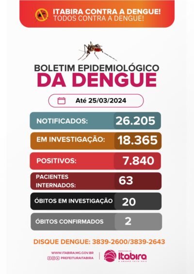 Itabira tem 63 pacientes internados por dengue; 20 óbitos são investigados