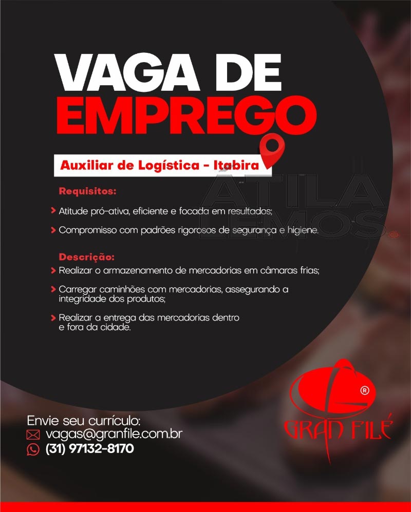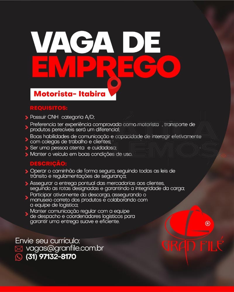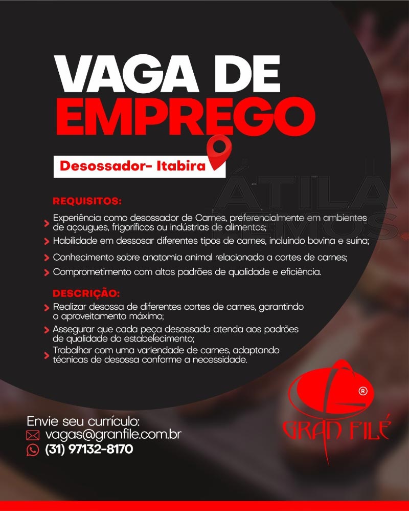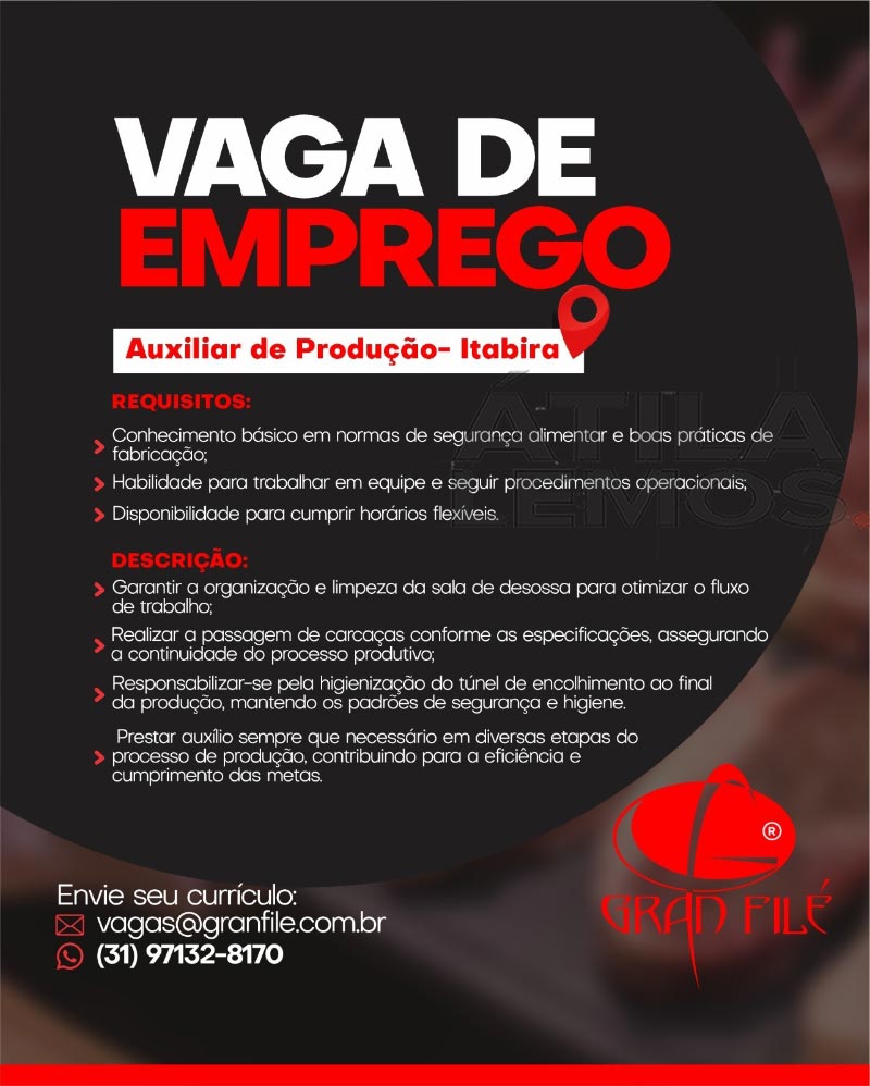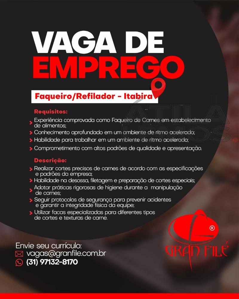 Os interessados nas vagas, devem encaminhar o currículo para à empresa Gran Filé no e-mail: