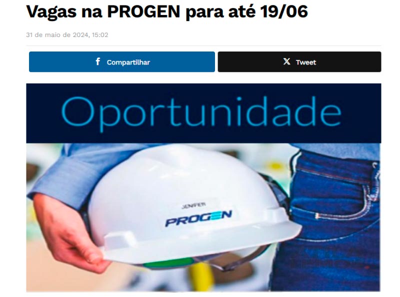 Você pode enviar o currículo para selecao@progen.com.br até o dia 24/06/2024. Importante colocar o título das vagas no assunto do e-mail.