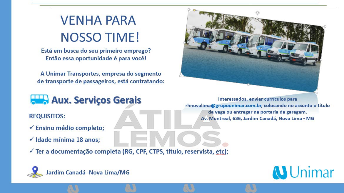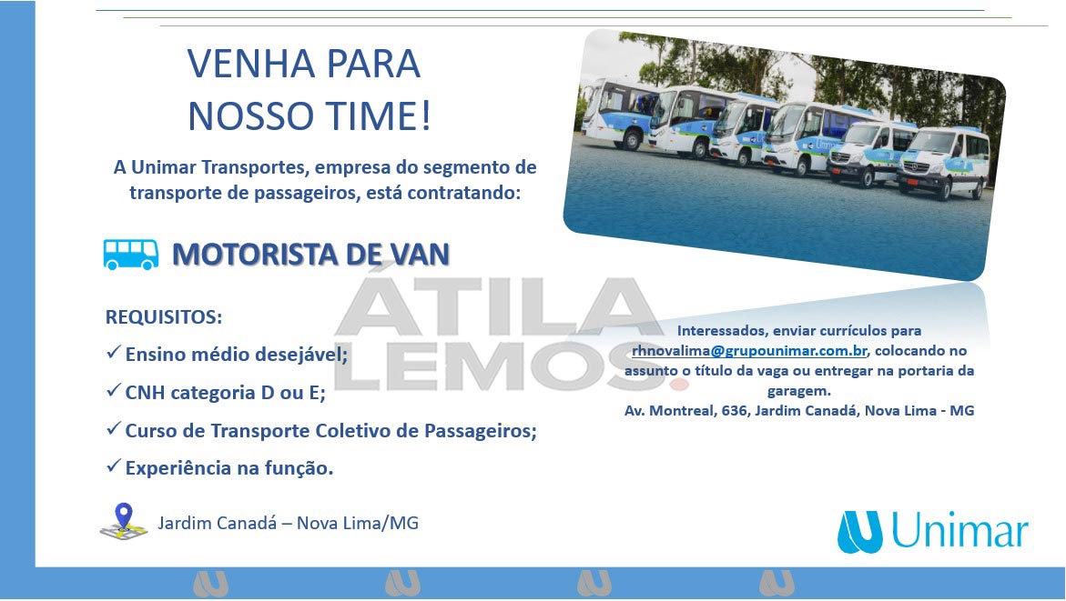 Os interessados nas vagas devem encaminhar o currículo para o e-mail: rhnovalima@grupounimar.com.br