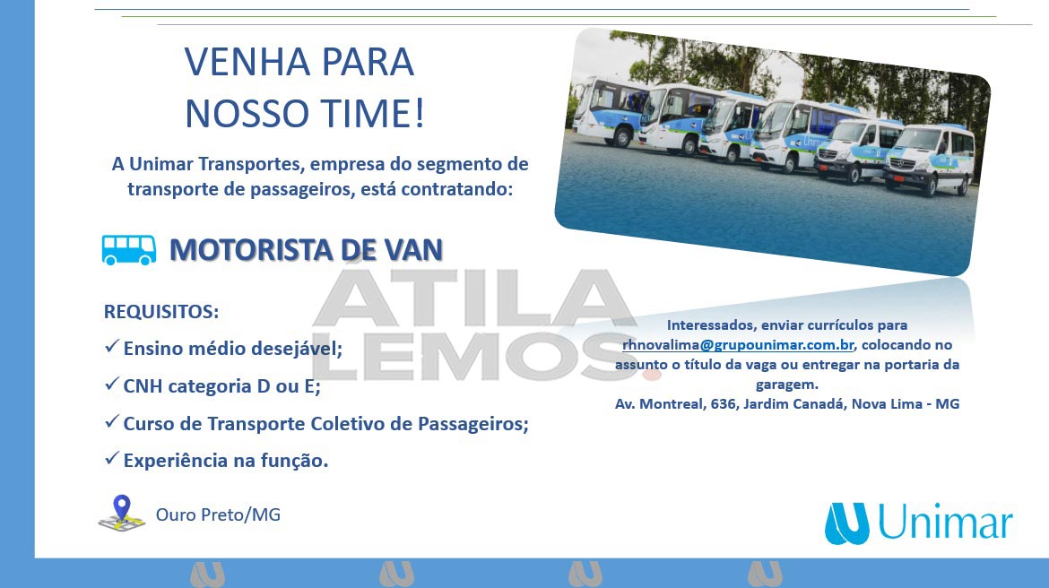 VAGAS para Barão de Cocais, Ouro Preto e Nova Lima