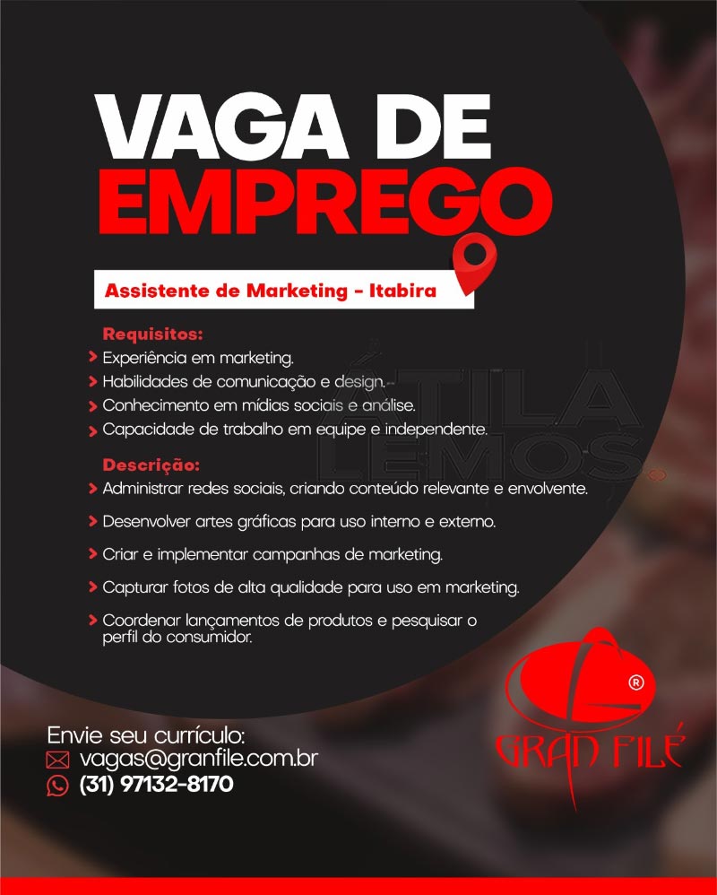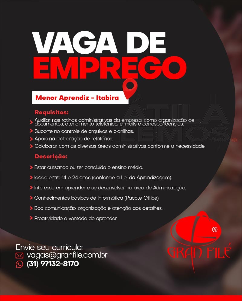 VAGAS na empresa Gran Filé – 26/06