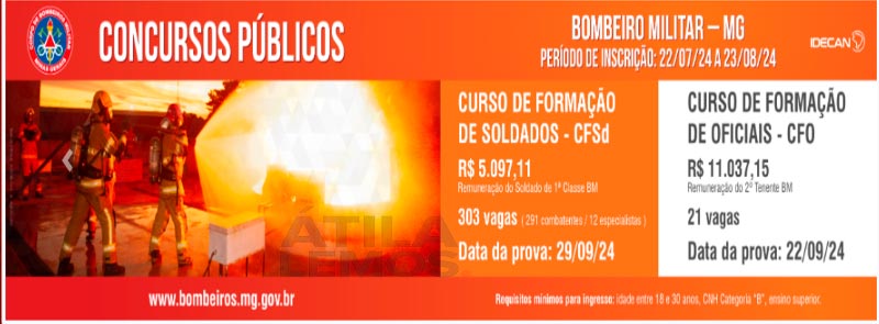 329 VAGAS no Concurso dos Bombeiros de Minas e salário de até 11 mil reais