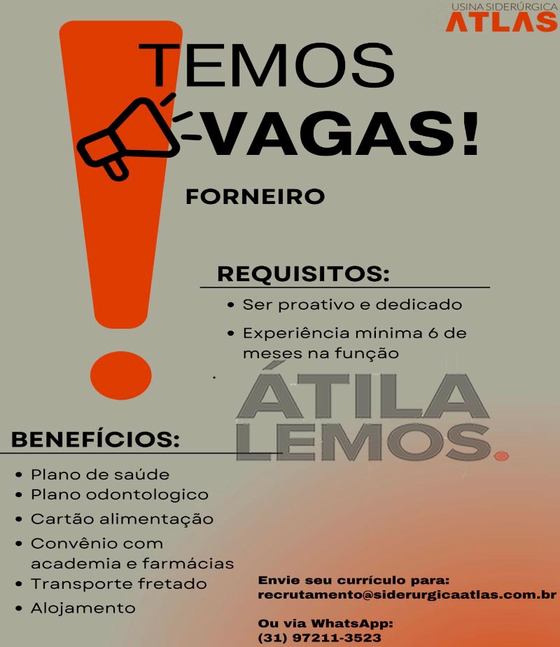 VAGAS na ATLAS Siderúrgica em Itabira