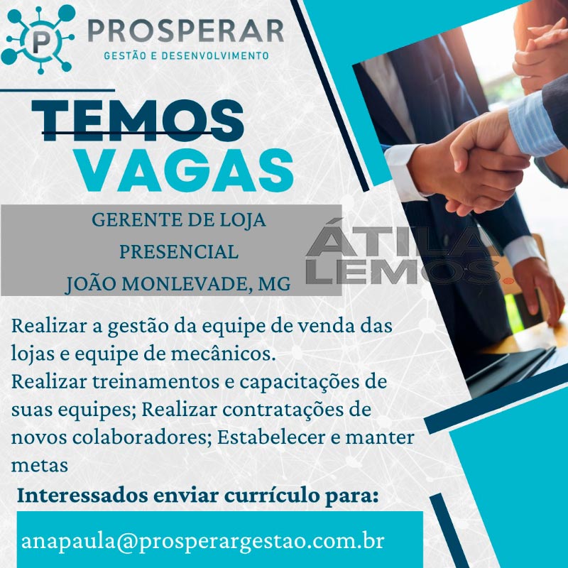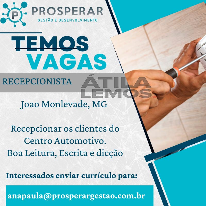 O site www.atilalemos.com.br , trabalha APENAS na divulgação das vagas. Assim reafirmamos que Não realizamos seleção e/ou contratação. Desta forma pedimos a todos que leiam sempre com muita atenção todos os dados da vaga antes de se candidatar. Envie currículo apenas para as vagas que corresponda ao seu perfil. Nosso Site não faz nenhum tipo de cobrança financeira dos usuários.