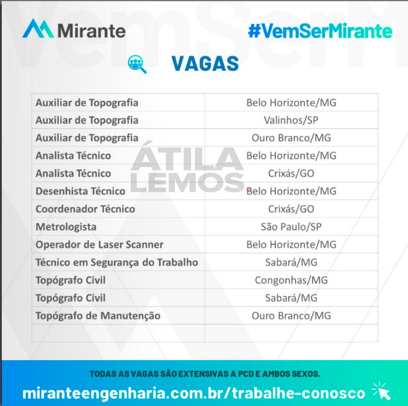 - O site www.atilalemos.com.br , trabalha APENAS na divulgação das vagas. Assim reafirmamos que Não realizamos seleção e/ou contratação. Desta forma pedimos a todos que leiam sempre com muita atenção todos os dados da vaga antes de se candidatar. Envie currículo apenas para as vagas que corresponda ao seu perfil. Nosso Site não faz nenhum tipo de cobrança financeira dos usuários.
