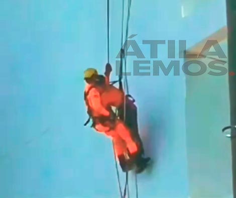Bombeiros resgatam trabalhador pendurado em corda, vídeo