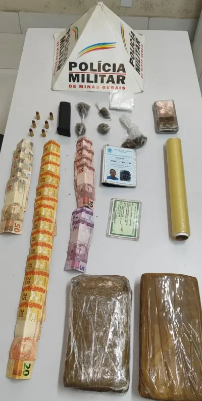 Na manhã dessa quinta-feira (20), Polícia Militar de Minas Gerais (PMMG), por meio da 123ª Cia. Tático Móvel, do 22°BPM, durante patrulhamento realizou uma incursão na Boca da Brochado, no bairro Alto Vera Cruz. Um indivíduo ao avistar os militares saiu em disparada adentrando em um imóvel, sendo alcançado. Durante as buscas foram localizadas duas barras de Skank totalizando 4 quilos, cinco buchas de Skank, um carregador Glock 9mm, seis munições Cal. 9mm, R$580,00 reais e uma balança de precisão. Um homem, apontado como integrante da organização criminosa (ORCRIM) dos Pitbulls, foi preso.