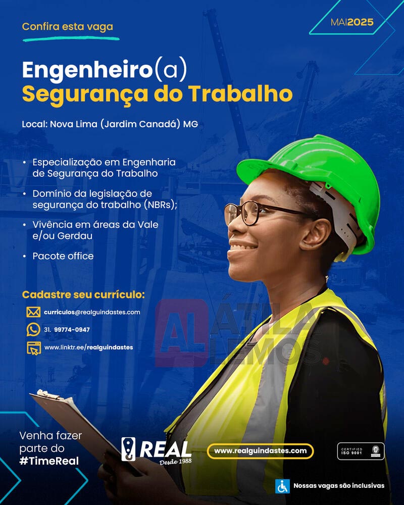 ENGENHEIRO(A) DE SEGURANÇA DO TRABALHO, Local: Nova Lima (Jardim Canadá) • MG