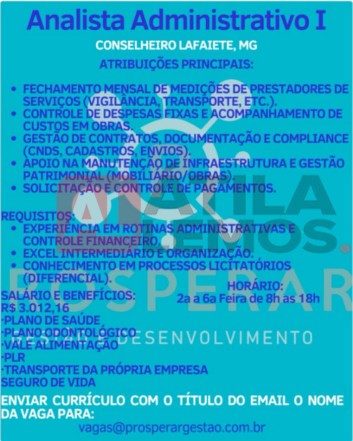 VAGA para Conselheiro Lafaiete