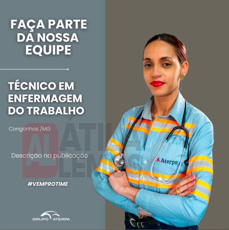 Venha fazer parte do Grupo Aterpa, encaminhar currículo para o e-mail: rh.corporativo@aterpa.com.br, com o assunto “Técnico em Enfermagem do Trabalho”.