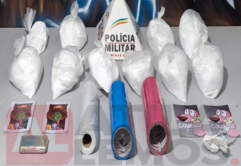 Os militares entraram no imóvel com testemunha e descobriram um esquema bem montado para processar drogas. Estavam lá dez sacolas com cocaína, balança de precisão, a prensa hidráulica, rolos de fita adesiva, embalagens plásticas e vários adesivos do personagem “Máskara”, identificação da facção criminosa. Um cartão bancário no nome do motorista também foi recolhido.