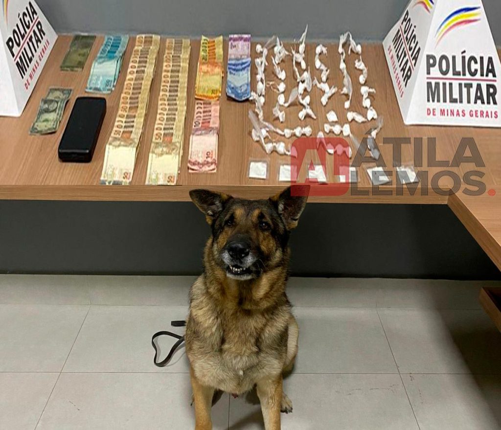 Durante a ação, na Rua Primeiro de Maio, no bairro Ponte da Aldeia, que contou com apoio da equipe Rocca com o cão de faro Aquiles, foram apreendidos 59 papelotes de cocaína, R$ 3.703,00 em dinheiro e um telefone celular.
