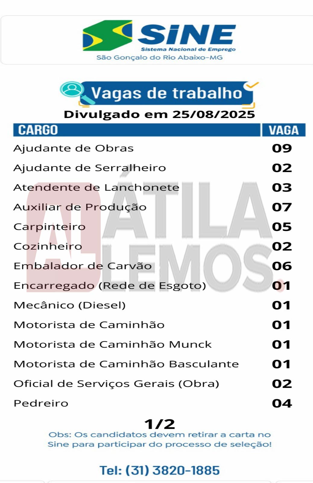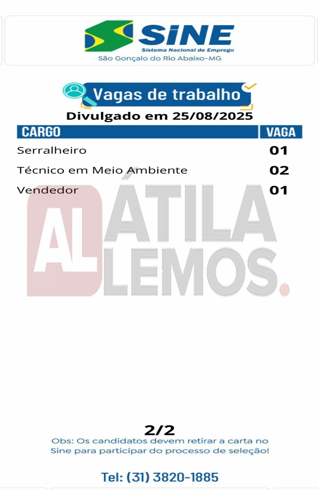 - O site www.atilalemos.com.br , trabalha APENAS na divulgação das vagas. Assim reafirmamos que Não realizamos seleção e/ou contratação. Desta forma pedimos a todos que leiam sempre com muita atenção todos os dados da vaga antes de se candidatar. Envie currículo apenas para as vagas que corresponda ao seu perfil. Nosso Site não faz nenhum tipo de cobrança financeira dos usuários.