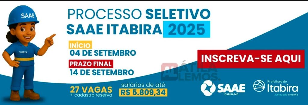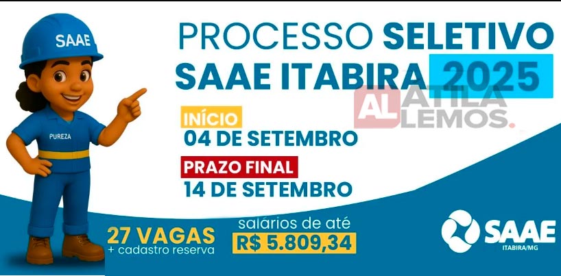 O SAAE de Itabira abriu processo seletivo com 27 vagas e salários de até R$ 5,8 mil, oportunidades são para diversos cargos com contratações temporárias; inscrições vão até 14 de setembro.