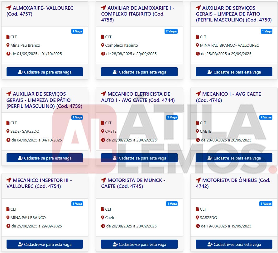 Clique na imagem ou nas VAGAS pleiteadas e faça seu cadastro direto no site da empresa.