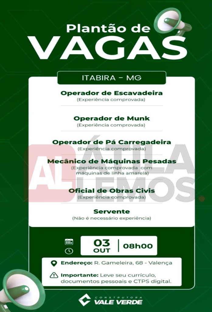 - O site www.atilalemos.com.br , trabalha APENAS na divulgação das vagas. Assim reafirmamos que Não realizamos seleção e/ou contratação. Desta forma pedimos a todos que leiam sempre com muita atenção todos os dados da vaga antes de se candidatar. Envie currículo apenas para as vagas que corresponda ao seu perfil. Nosso Site não faz nenhum tipo de cobrança financeira dos usuários.