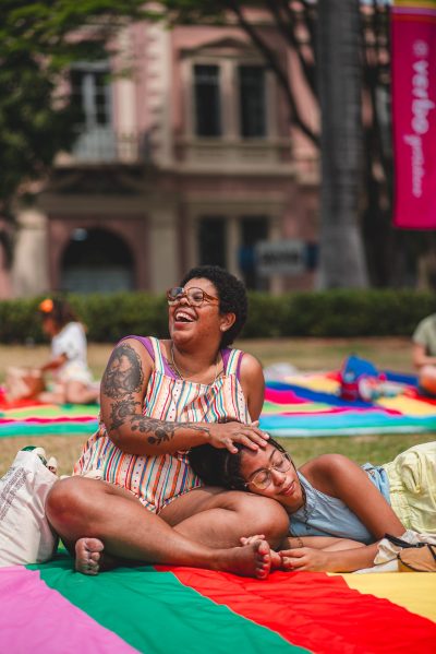 Logo depois, às 10h30, começa a roda de conversa guiada por Tatiana Mundim, curadora do Pilar Bem Viver no VerboGentileza. Reunidos sobre os toalhões gigantes que já se tornaram marca do projeto, os participantes são convidados a vivenciar a escuta como gesto de transformação. A proposta é criar um espaço de partilha e reflexão sobre as relações contemporâneas, onde o diálogo e o afeto se tornam ferramentas de fortalecimento coletivo.
