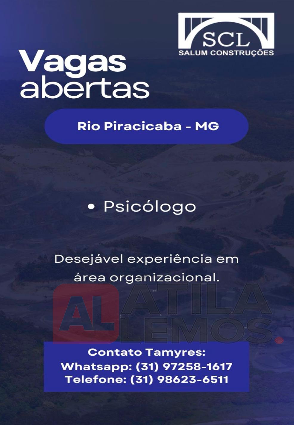 Vaga aberta em Rio Piracicaba – MG – Contato Tamyres: (31) 98623-6511