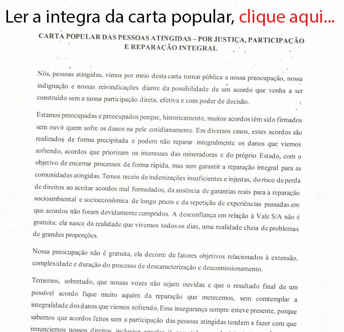 Carta popular das pessoas atingidas – por justiça, participação e reparação integral.