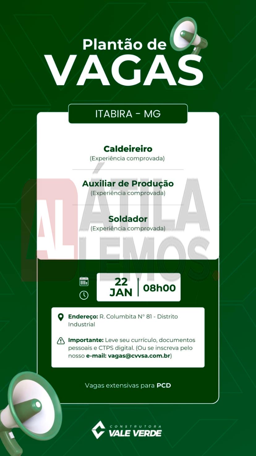 - O site www.atilalemos.com.br , trabalha APENAS na divulgação das vagas. Assim reafirmamos que Não realizamos seleção e/ou contratação. Desta forma pedimos a todos que leiam sempre com muita atenção todos os dados da vaga antes de se candidatar. Envie currículo apenas para as vagas que corresponda ao seu perfil. Nosso Site não faz nenhum tipo de cobrança financeira dos usuários.