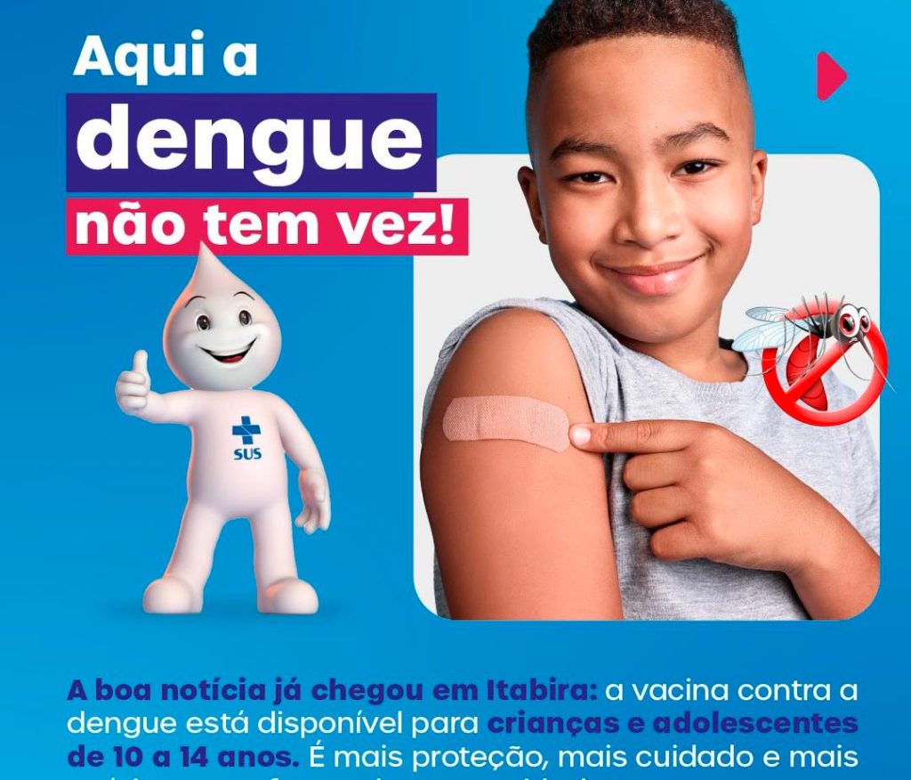 Vacina contra a dengue chega a Itabira para imunização de crianças e adolescentes de 10 a 14 anos. A partir de segunda-feira (26), a vacina estará disponível nas UBS e na Policlínica.