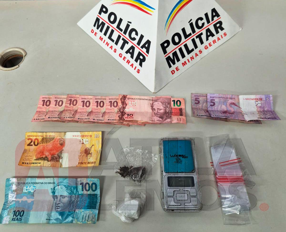 A Polícia Militar prendeu, na noite desta terça-feira (21/01/2026), um jovem de 19 anos por tráfico ilícito de drogas no bairro Machado, em Itabira. A ocorrência foi registrada por volta das 19h46, na Rua Afonso Arinos.