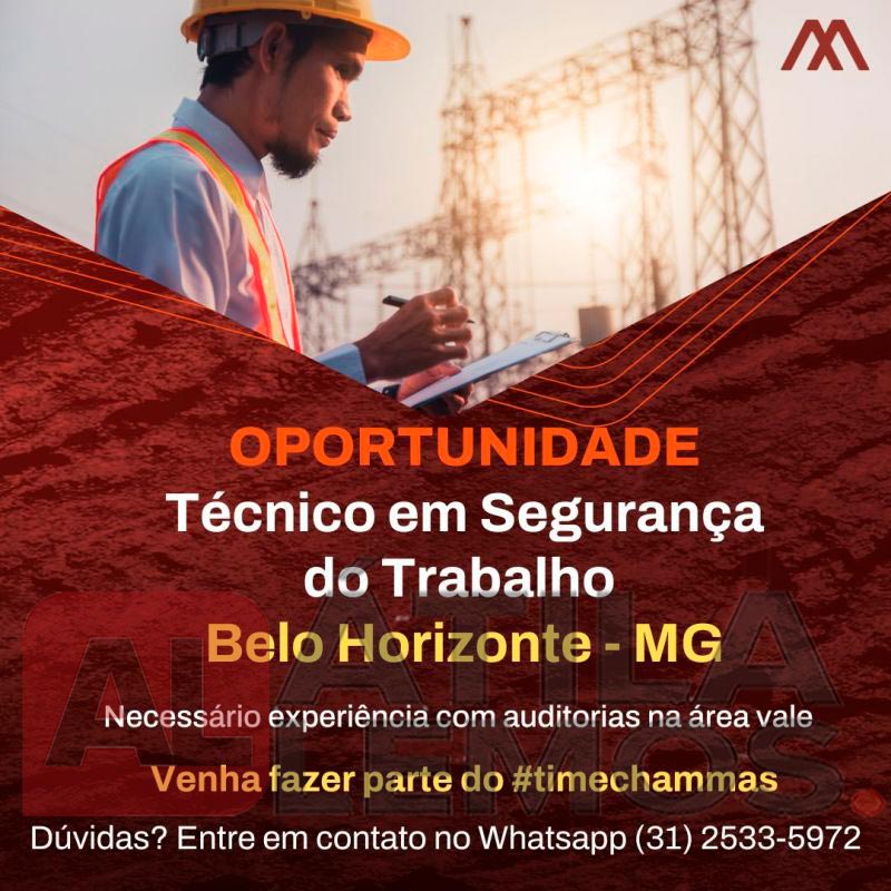 Cargo: Técnico(a) de Segurança do Trabalho, na empresa Chammas Engenharia. Local: Belo Horizonte/MG.