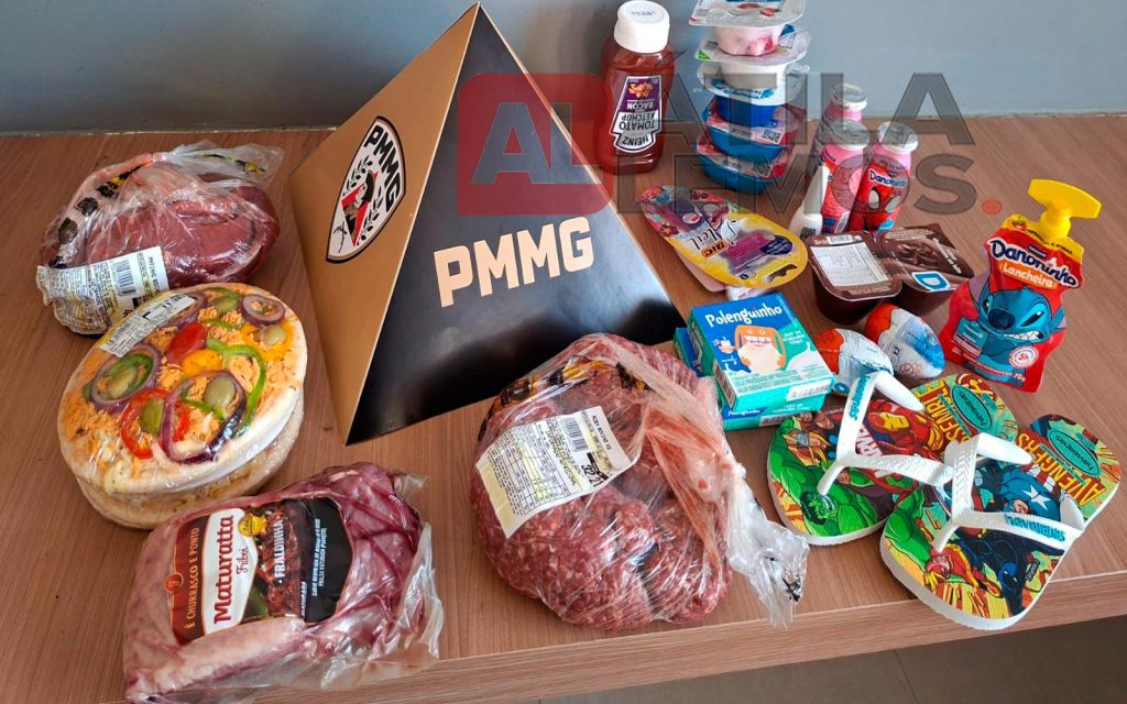 Durante a abordagem, realizada na área externa do comércio, os militares procederam à busca pessoal e localizaram os produtos subtraídos. Foram recuperados gêneros alimentícios, além de itens de higiene e cosméticos, totalizando aproximadamente R$ 315 em mercadorias.