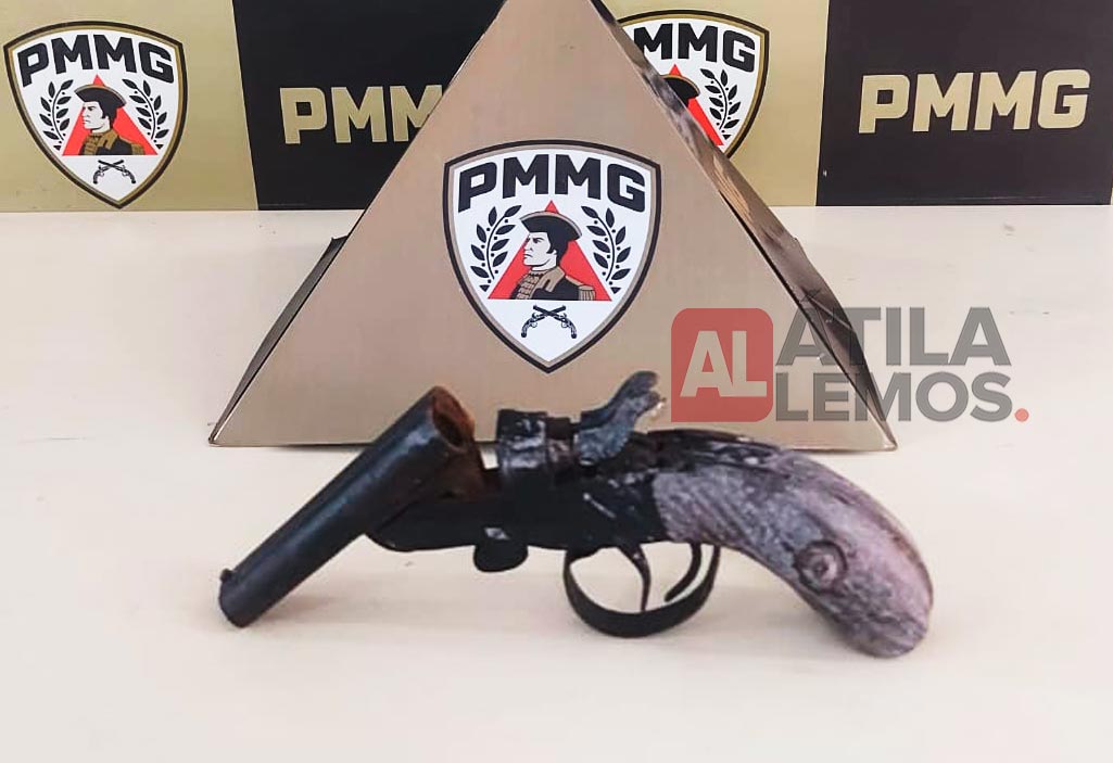 Durante diligências no imóvel, os policiais realizaram buscas e localizaram, no quarto do suspeito, uma arma de fogo do tipo garrucha, de dois canos, aparentemente de calibre 32.