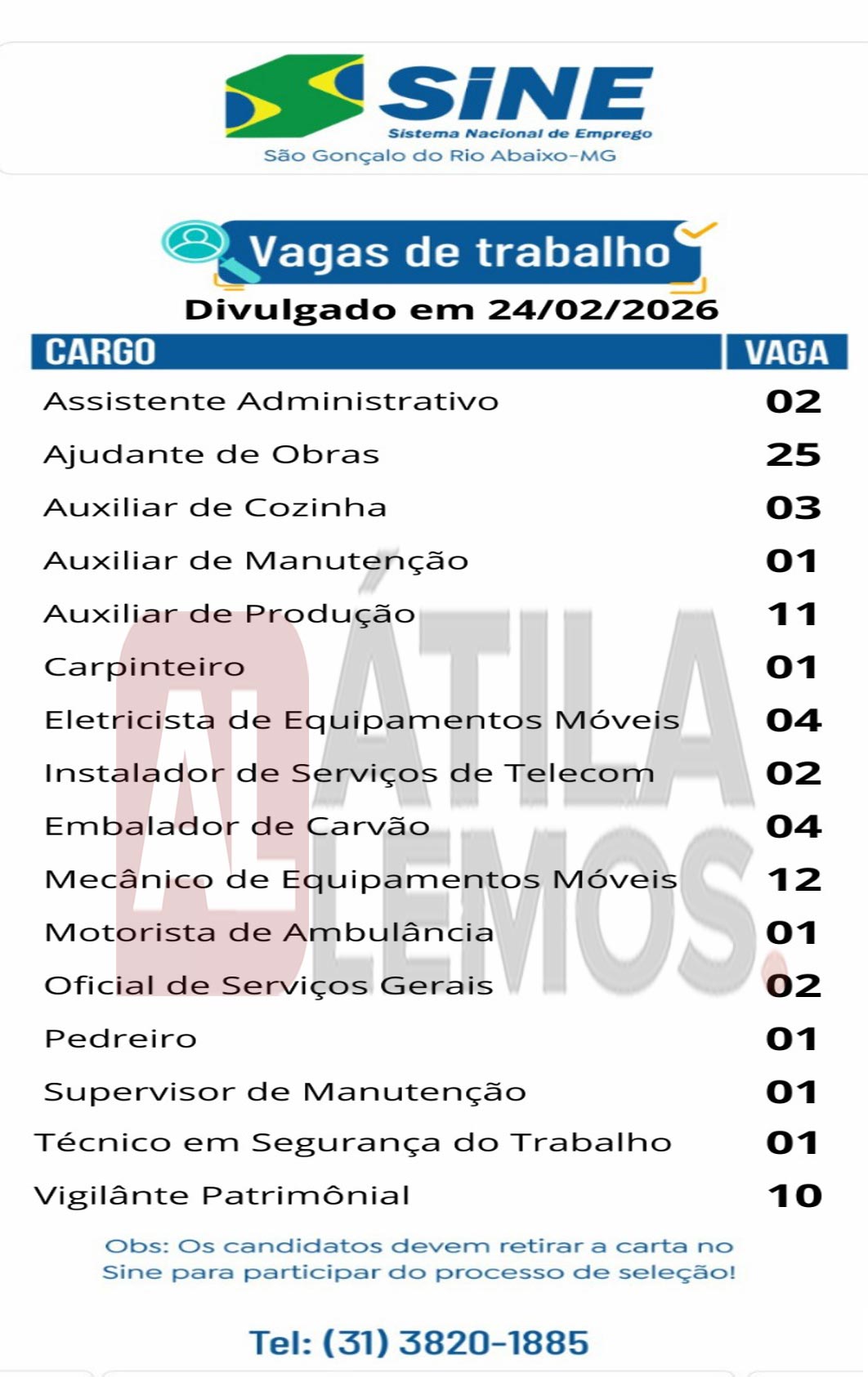 📄 Interessados: Devem retirar a carta de encaminhamento no SINE ou pela Carteira de Trabalho Digital.
