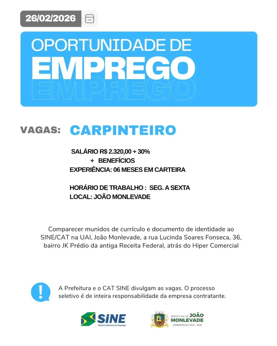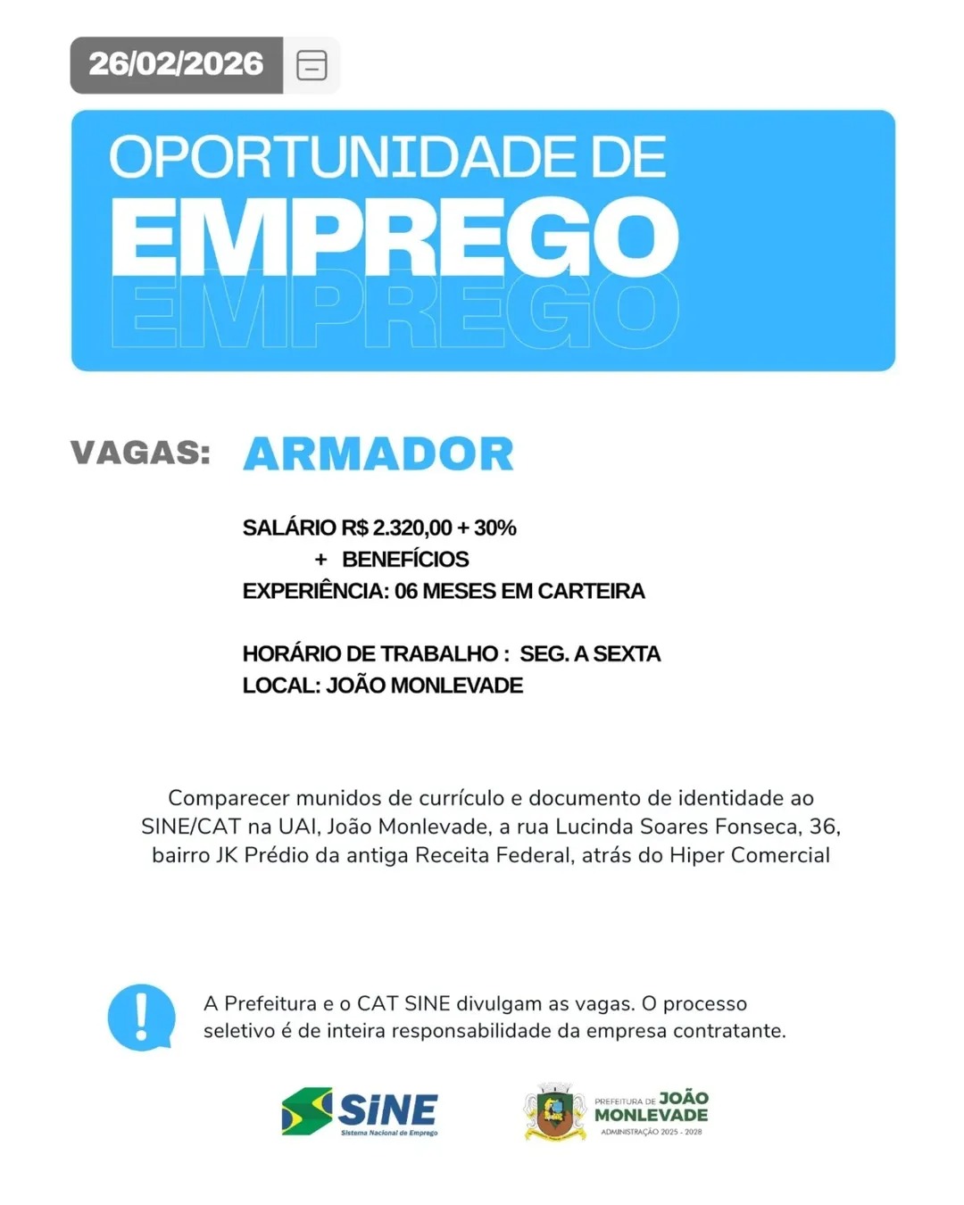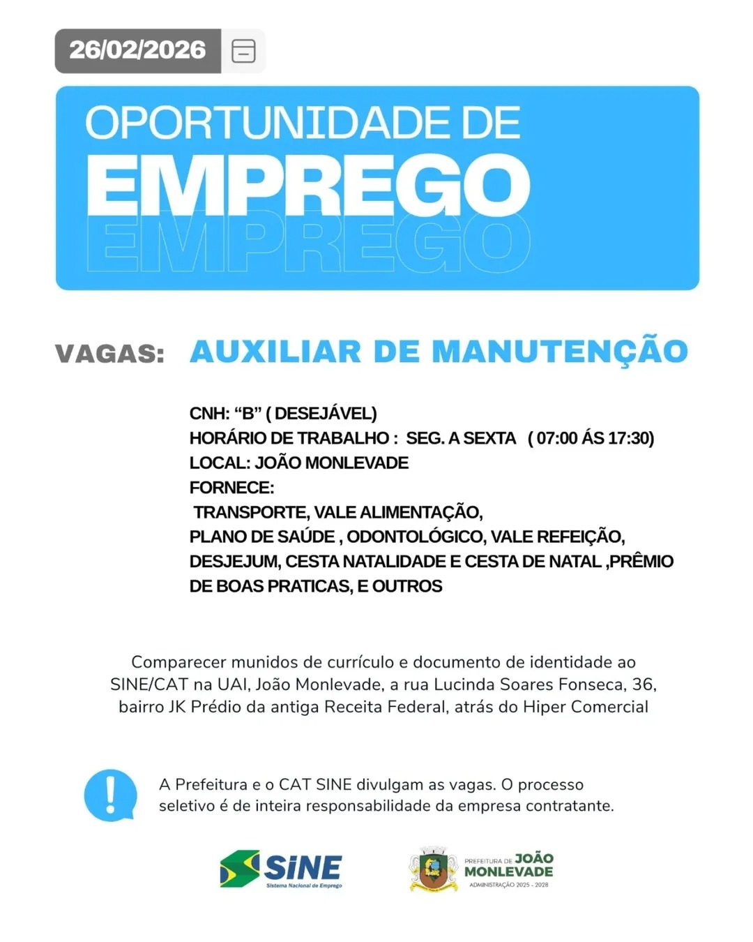 VAGAS em João Monlevade