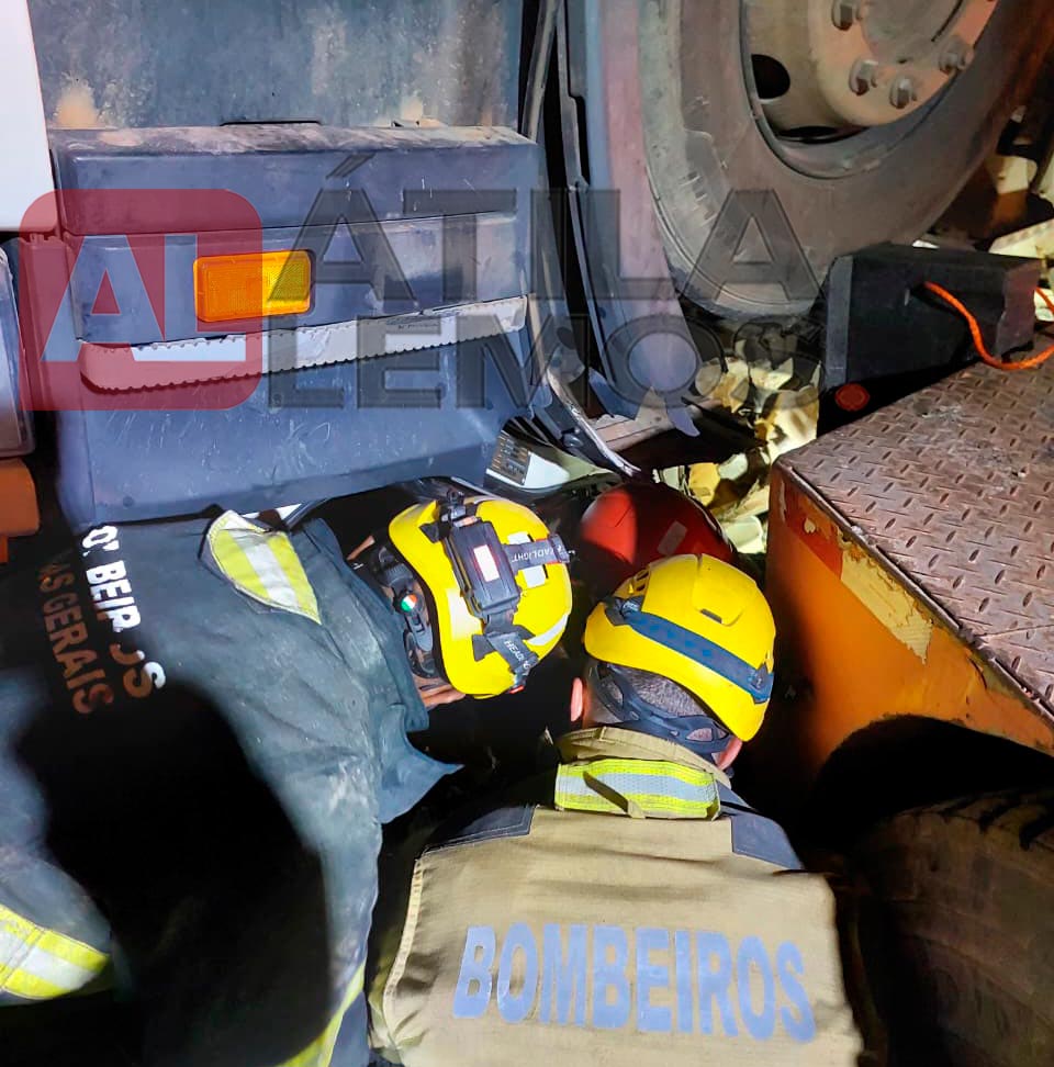 De acordo com o Corpo de Bombeiros Militar, o 6º Pelotão de Itabira foi acionado para prestar apoio ao Pelotão de João Monlevade no atendimento à ocorrência. No local, as equipes constataram que o condutor estava totalmente encarcerado no interior da cabine de um caminhão Scania P310, de cor branca, com placas de Nova Venécia (ES).