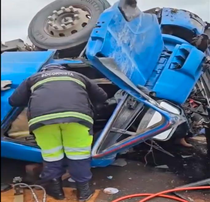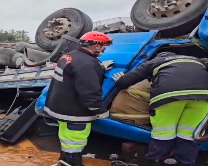 Devido às condições estruturais do caminhão após o capotamento e à posição em que ficou; inicialmente, não foi possível visualizar a segunda ocupante. As equipes iniciaram então uma operação de desencarceramento, utilizando ferramentas hidráulicas.