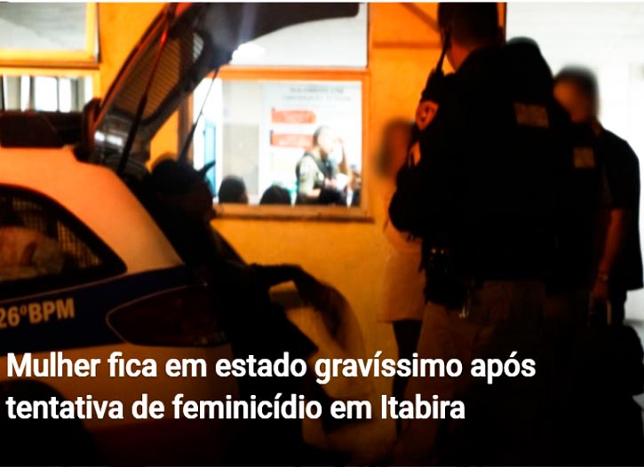 Uma mulher foi socorrida em estado gravíssimo após ser vítima de uma tentativa de feminicídio na madrugada desta quarta-feira (1º), em Itabira. O crime ocorreu por volta das 3h30, na rua Santana, no bairro Penha. De acordo com a Polícia Militar de Minas Gerais, uma testemunha relatou ter sido acordada pela vítima, que batia no portão pedindo socorro.