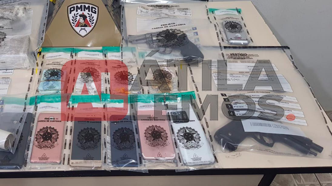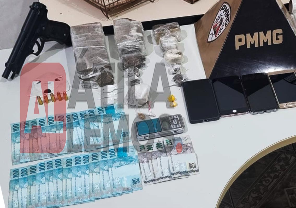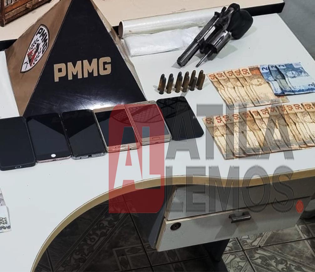 Entre os itens recolhidos estão um revólver calibre .38, 17 munições de diferentes calibres (.38 e .380), porções de maconha, crack e cocaína, dois comprimidos de droga sintética, além de uma balança de precisão, dinheiro e diversos materiais utilizados no preparo e armazenamento de entorpecentes.