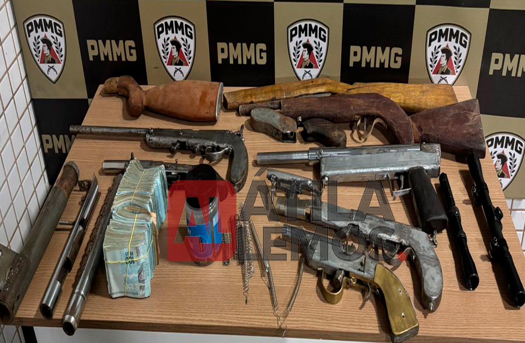 Polícia Militar apreende 54 mil reais e arsenal em armas de fogo