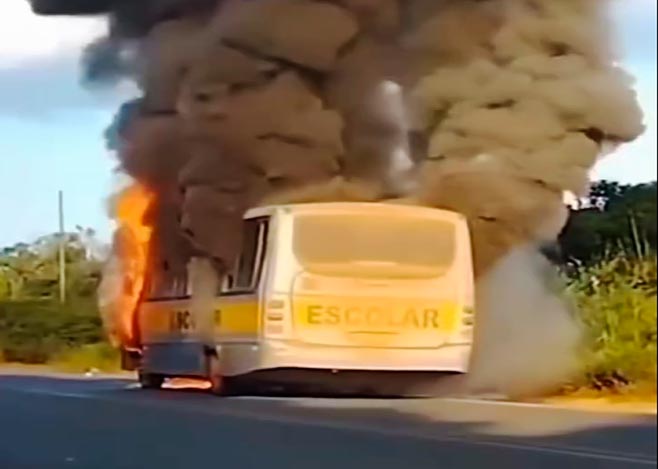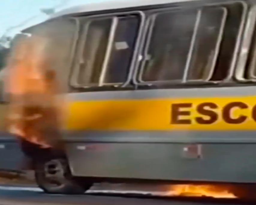 Ônibus escolar com jogadores pega fogo