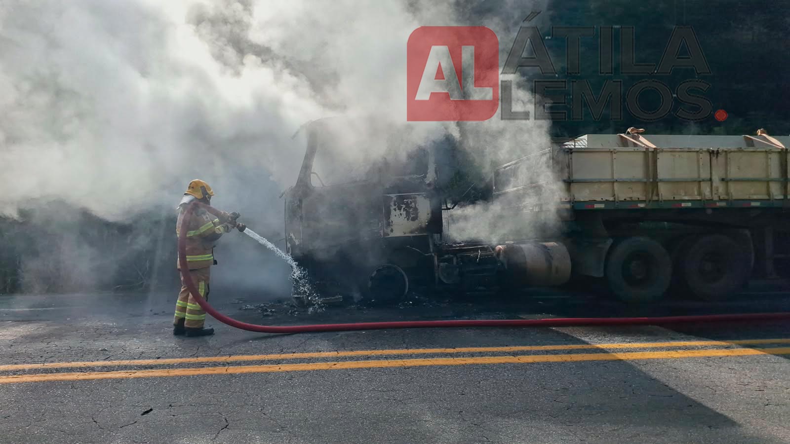 Ao chegarem ao local, os militares encontraram a cabine do veículo totalmente destruída pelas chamas. Apesar da gravidade do incêndio, havia baixo risco de propagação para o restante da carreta, já que a carga transportada era composta por postes e vigas de concreto, materiais não combustíveis.
