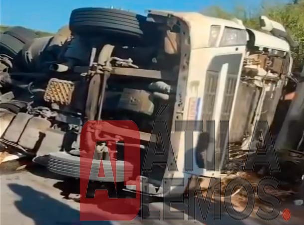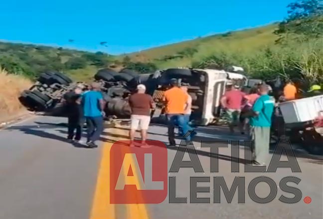 O trânsito ficou totalmente interrompido na manhã desta segunda-feira (27) na rodovia MGC-381, altura do km 88, em Divino das Laranjeiras/MG, no sentido Governador Valadares, após o tombamento de uma carreta carregada com placas de gesso.